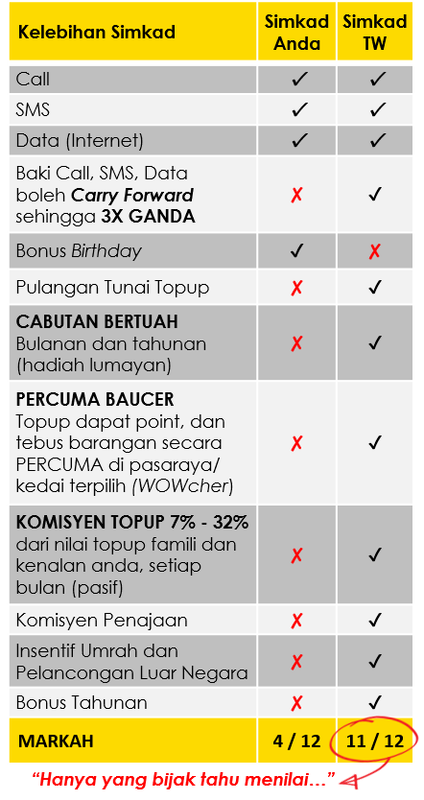 Ini adalah perbezaan simkad yang tuan/puan guna sekarang dengan Simkad Tone Wow.