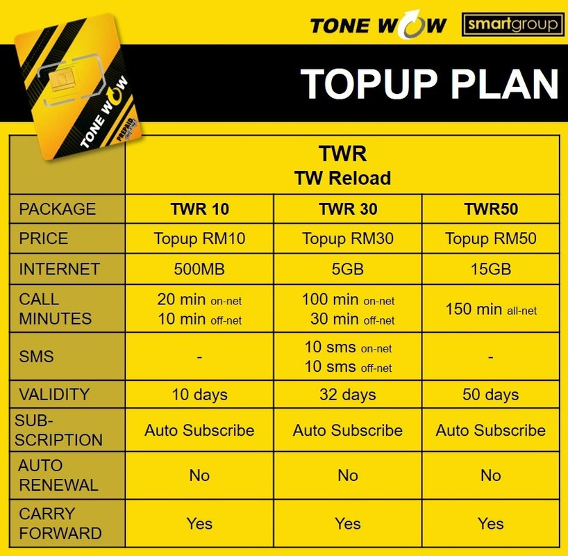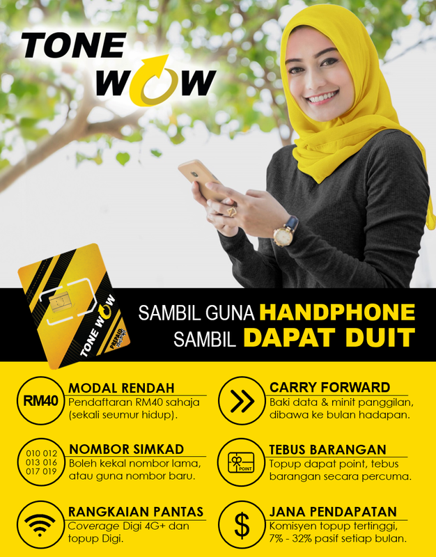 Tuan/puan akan diberikan satu simkad Tone Wow untuk kegunaan sendiri. Simkad ini perlu sentiasa aktif untuk melayakkan tuan/puan dibayar komisen.